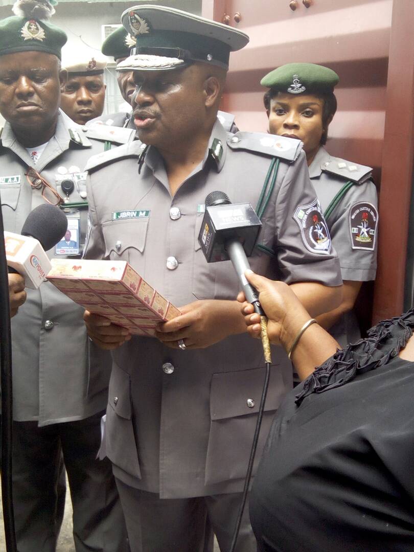 The Apapa customs boss listed their contents to include 1,136 cartons of Tramadol Hydrocloride tablet (225), 56 cartons of Collstop Chorpheniramine Maleate Capsules (4mg), 962 cartons of Tramadol Capsules BP (120mg) and 192 cartons of Tramadol Capsules (250mg). The others are 374 cartons of Col-Caps Capsules (4mg), 330 cartons of Ibramol, 453 cartons of Rally extra (50) and some quantities of Chest and Lungs Tablets (15mg).