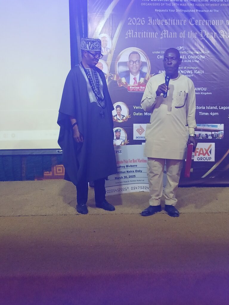 The 2026 MIMA investiture ceremony held March 30, 2026 also spotlighted the media’s indispensable role in the maritime sector, with Godfrey Bivbere, immediate past President of the Maritime Reporters Association of Nigeria (MARAN), decorated as Best Maritime Reporter of the Year.