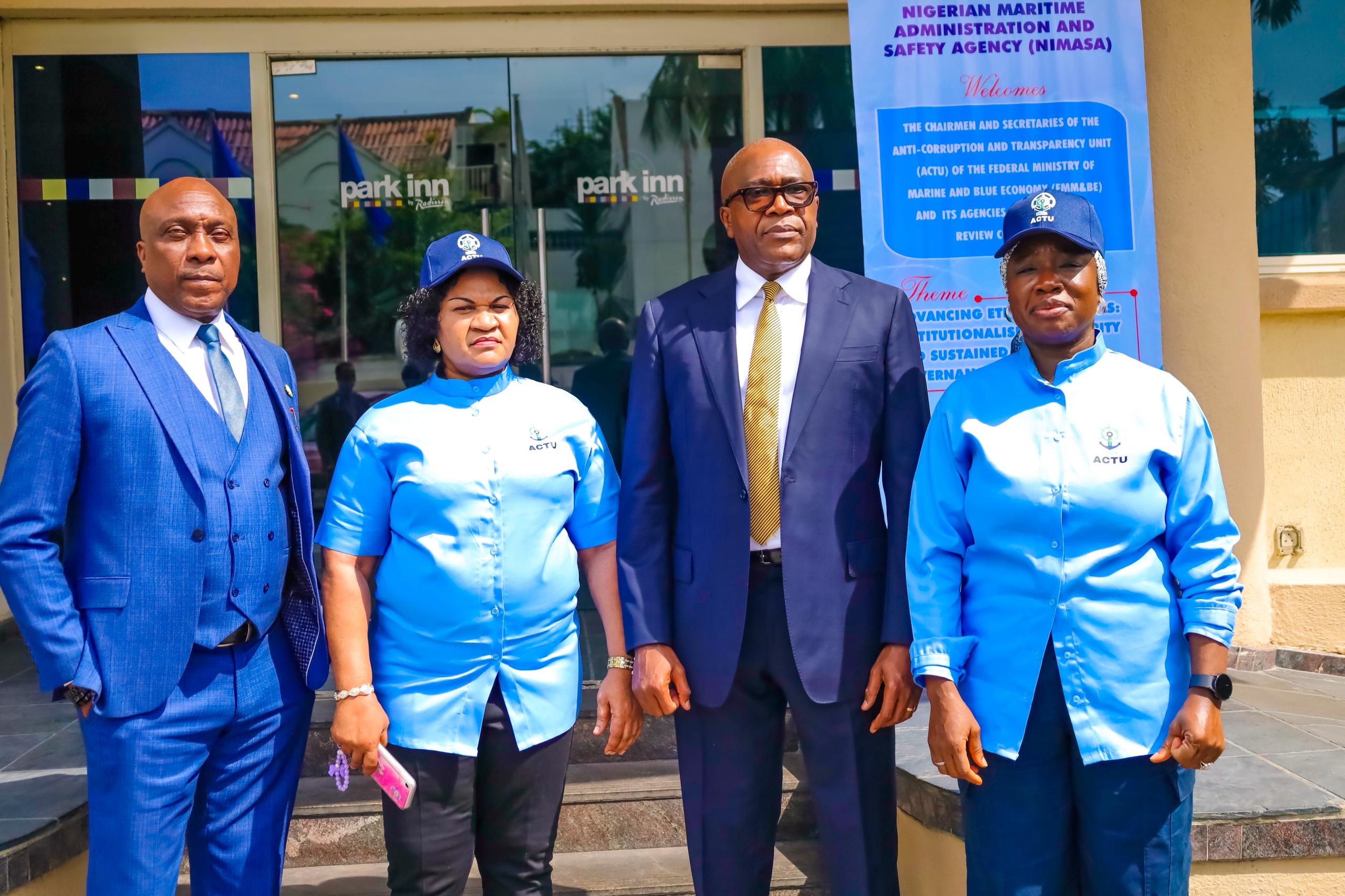 R-L: Deputy Director, Legal Services, Nigerian Maritime Administration and Safety Agency, NIMASA, Aisha Idris Yakubu; Executive Director, Finance and Administration, Chudi Offodile; Deputy Director, Special Duties, Federal Ministry of Marine and Blue Economy, Comfort Madichi and Resident Anti-Corruption Commissioner for Lagos State, Independent Corrupt Practices and Other Related Offences Commission (ICPC), Alexander Chukwurah during the Peer Review Conference hosted by the NIMASA’s Anti-Corruption and Transparency Unit (ACTU) in Lagos.