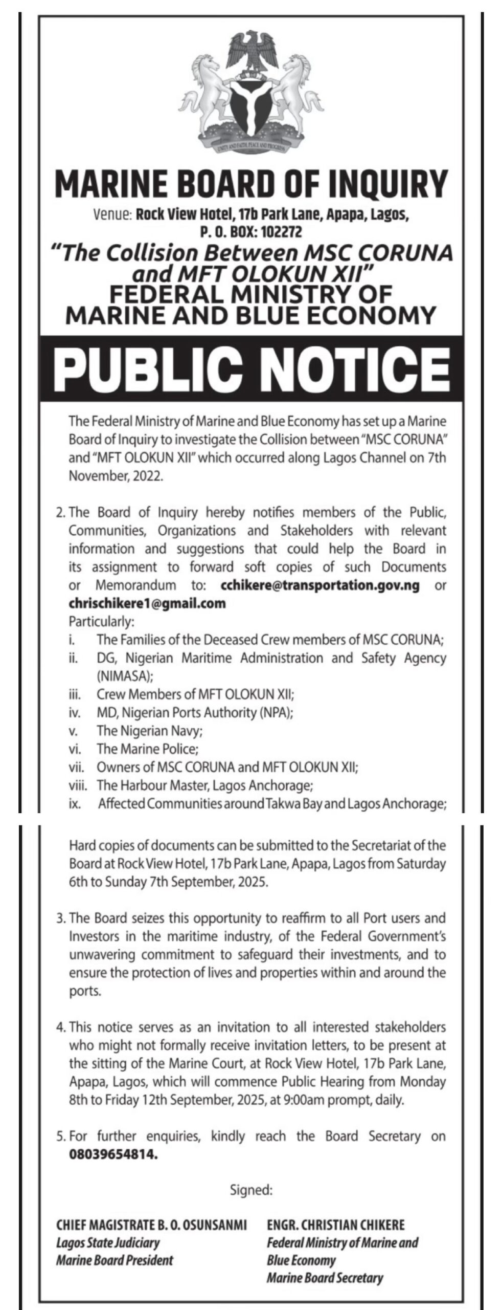 Maritime Maritime Published 3 hours ago on October 21, 2025 By Eguono Odjegba Share Tweet Related Topics: Up Next Osamgbi Redeployed To Servicom As NIMASA Reshuffles Management Team Don't Miss IMO Sec Gen’s Visit Rekindles Nigeria’s Maritime Ambition Continue Reading Advertisement You may like Click to comment Leave a Reply Cancel replyYour email address will not be published. Required fields are marked *Comment * Name * Email * Website Save my name, email, and website in this browser for the next time I comment. Advertisement Latest Trending Business Maritime19 minutes ago Osamgbi Redeployed To Servicom As NIMASA Reshuffles Management Team Maritime3 hours ago Maritime Business Focus1 day ago IMO Sec Gen’s Visit Rekindles Nigeria’s Maritime Ambition Analysis1 day ago Gas Export Earnings: The EGTL Revenue Blind Spot Customs Report3 days ago Customs Boss, Adeniyi Bags PhD in Leadership and Strategic Studies Analysis3 days ago Behind the Ferry Curtains: Untangling the Politics of Lagos ‘Omi-Eko’ Launch Politics4 days ago Senator Seriake Dickson: Portrait of the Last Man Standing Maritime4 days ago Abi’s Alleged Undemocratic Moves Sparks Crisis In Maritime Union Edaucation5 days ago Focused Leadership Earns MAN Oron Global Praise Crime5 days ago Nigerian Navy Beecroft Command Thwarts Fuel Smuggling in Lagos Waters Customs Report5 days ago ‘Leadership Is Deliberate and Encapsulates Discipline, Accountability, Innovation’ Features6 days ago ANLCA President, Nwokeoji Hails Prince Shittu at 75 …Celebrates His Legacy of Leadership and Peace Customs Report5 years ago ANLCA Board is intact, cannot be wished away by anybody’-Elochukwu Maritime11 months ago B-R-E-A-K-I-N-G: Effedua, Rector MAN Oron, Resigns Features12 months ago EFCC’s Probe: Okowa Plots Sheriff’s Removal Despite London Accord Business1 year ago Customs Trains ANLCA Members, Others on B’Odogwu Portal Analysis1 year ago NPA’s Alleged Executive Management Fight: The Half Truth & Truth Features1 year ago ANLCA Board Election: Know Your Candidates Interview12 months ago ‘Why We Launched B-Odogwu Pilot Scheme With Webb Fontaine Still Running’ – Adeniyi Maritime1 year ago Onyemekara Promoted GM, Appointed NPA’s New Spokesperson Uncategorized1 year ago ‘Rush To Break News Can Lead To Brush With Cybercrime’- Police Customs Report8 months ago Nigeria Customs: Trust, Competence And The Oramalugo Factor Business Maritime1 year ago Maritime Industry At 64: Oyetola Versus Oyetola Customs Report4 months ago Kebbi Is Hub of Hard Drugs Smuggling In Northern Region’ – Oramalugo Advertisement Enter ad code her