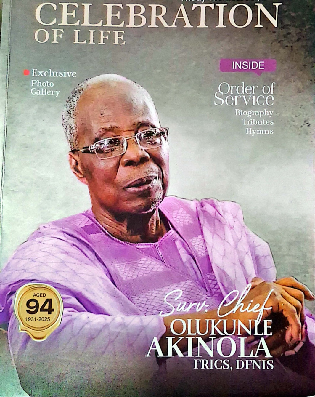 Measured not by wealth, but by impact, late Chief Akinola’s life stands as a map for generations who seek to build not just structures, but societies. Surv. (Chief) Olukunle Akinola, FNIS, FRICS (1931–2025). A man who surveyed the earth and left a mark on his people.