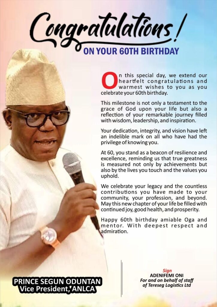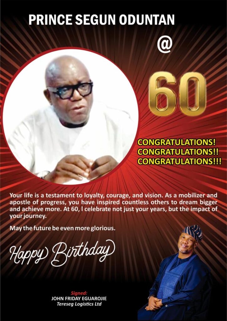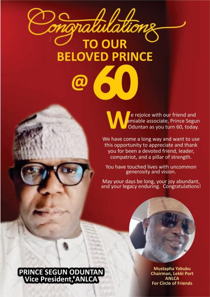 At 60, Oduntan embodies resilience, wisdom, and loyalty. His detribalized politics, business acumen, and philanthropic spirit have earned him admiration across the maritime industry and beyond. As tributes pour in, one theme resonates: Prince Segun Oduntan is not just celebrating a birthday, but a legacy of service and leadership.