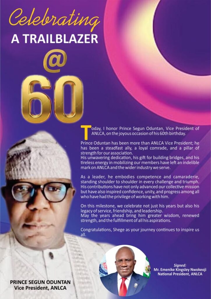 Today, March 18, 2026, Prince Segun Oduntan (PSO), Vice President of the Association of Nigerian Licensed Customs Agents (ANLCA), will clock 60. For a man whose life has been defined by service, association politics, philanthropy, and community development, this milestone is more than a birthday. Yes, it is a celebration of impact.
